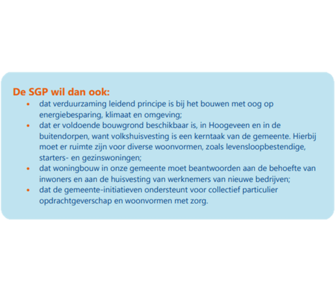 Wonen is meer dan een dak boven het hoofd. Het gaat om thuis kunnen zijn in een omgeving die past bij je levensfase, werk, gezin en sociale netwerk. Op dit moment is de woningbouwopgave in Nederland en Hoogeveen groot. De exacte inpassing van de opgave is de taak voor de gemeente zelf.
